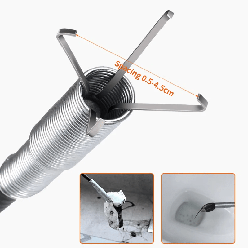 - Leistungsstarke Federtechnologie 🌀 – Die flexible Spiralstruktur passt sich jeder Biegung an und löst selbst hartnäckige Verstopfungen.